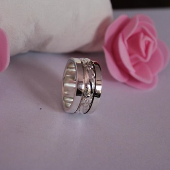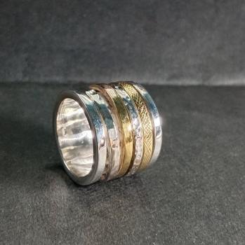 Anillo de múltiples hilanderos de Banda Clásica hecha a mano, diseños de Rivika, ajuste de bisel martillado de latón plateado para Aniversario de hombres/mujeres