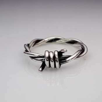 Anillo de hombre minimalista oxidado de plata 925, diseño de alambre de púas hecho a mano Punk gótico único con boda de perlas de diamante