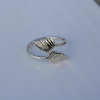 Anillo de hoja de playa de Plata de Ley 925 hecho a mano, anillo de punta cortada de hoja de plata antigua ajustable para mujer, joyería fina